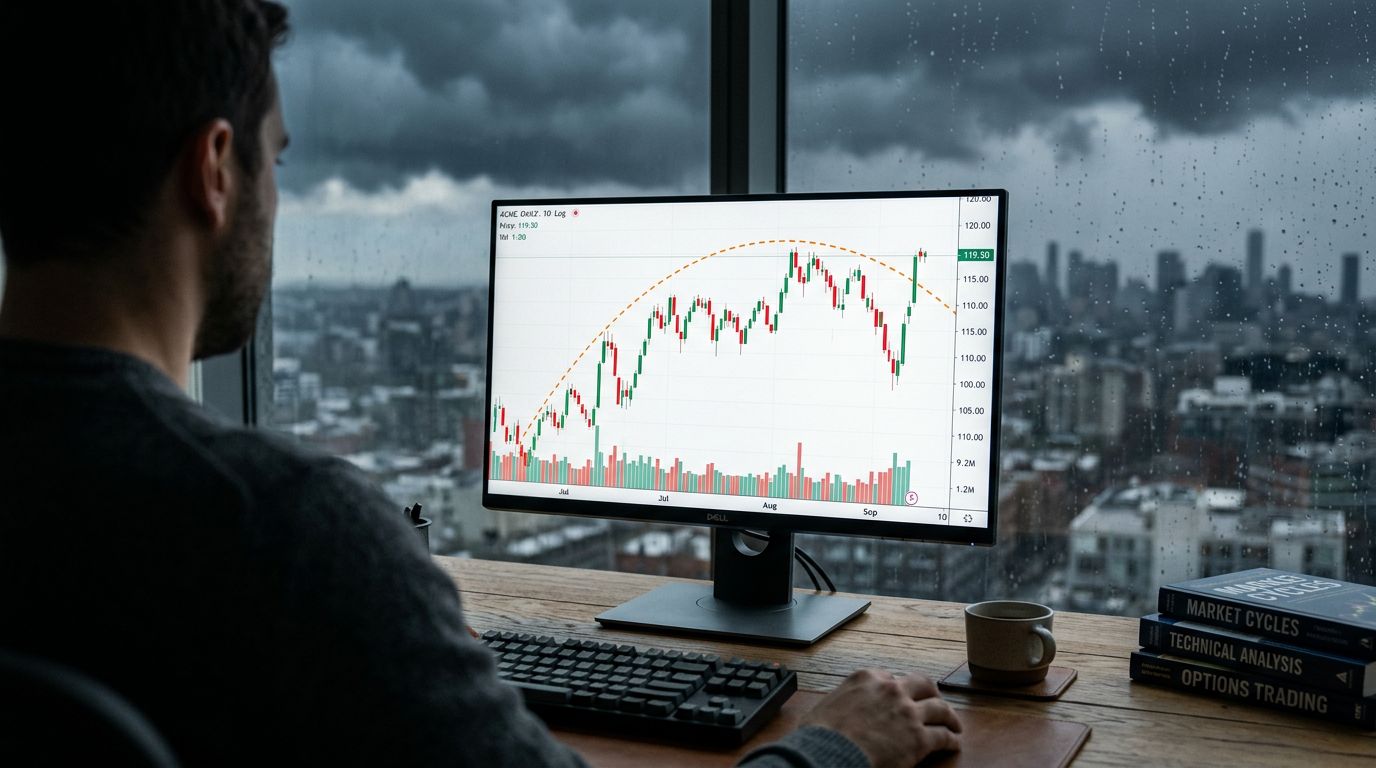 Imagine throwing a baseball straight up into the air. As it reaches the peak of its arc, it slows down, rounds off at the top, and eventually starts to fall back to earth. A rounded-top pattern in the stock market suggests that the aggressive upward momentum we've enjoyed for months might be running out of energy.