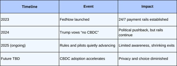 Trump may be fighting it on the political stage, but the machinery behind the curtain keeps grinding forward. And once the rulebook is written in code, opting out wonāt be as simple as switching banks or hiding cash under the mattress.